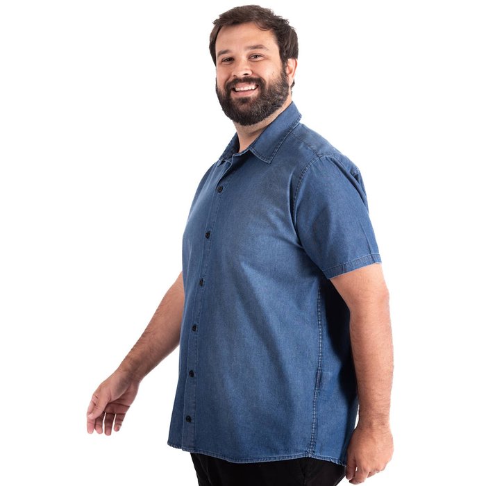 Com manga curta e fechamento por botões frontais, essa camisa é prática e versátil, ideal para dias mais quentes. Sua modelagem Plus Size, disponível nos tamanhos 05 ou 14, garante um caimento impecável, valorizando o corpo masculino com naturalidade e estilo.