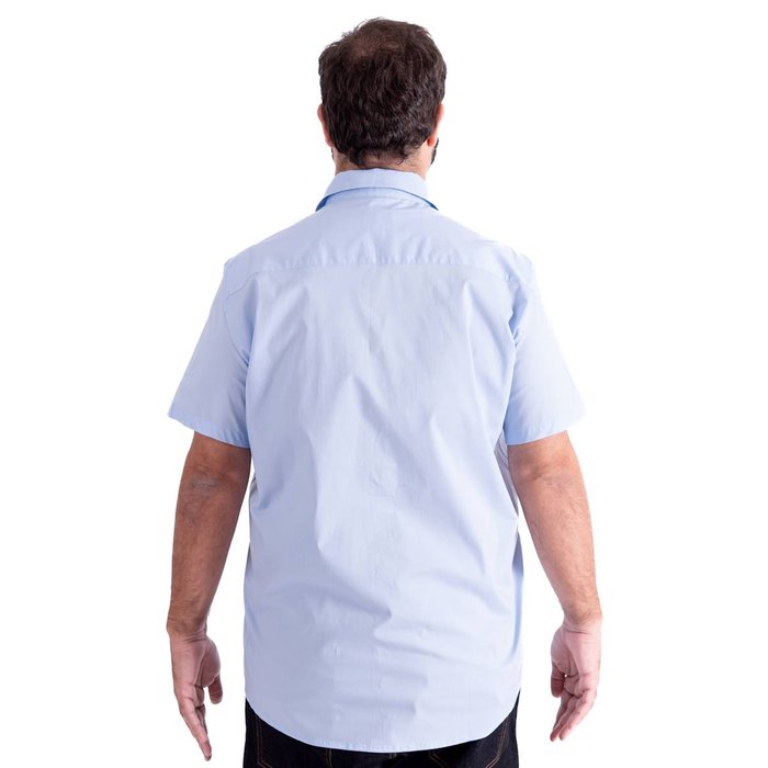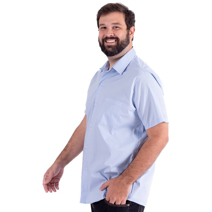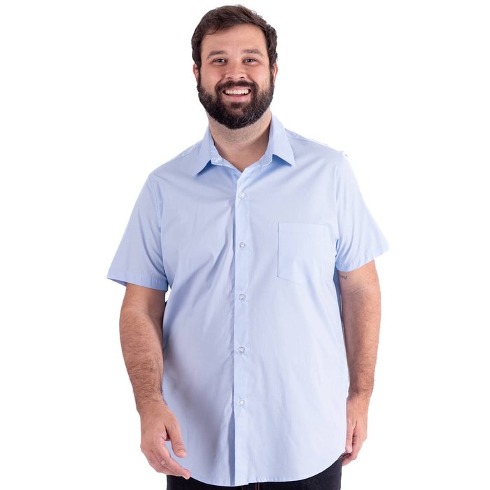 Camisa Plus Size Masculina MC Tricoline Elastic Azul Claro