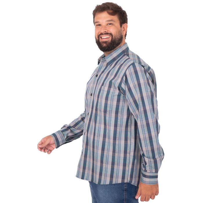 Possui manga longa com punhos ajustáveis por botões, permitindo adaptar o uso conforme a ocasião. O caimento é de corte tradicional, confortável e pensado especialmente para o público Plus Size, proporcionando excelente ajuste ao corpo sem apertar.