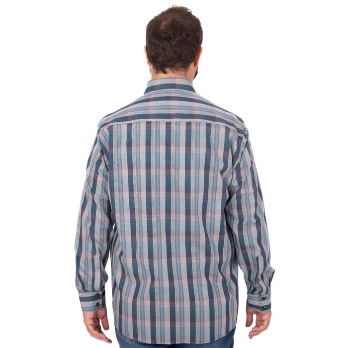 A estampa xadrez clássica em tons de verde confere um visual atemporal e sofisticado, ideal para composições casuais ou social casual. A gola clássica com pontas tradicionais (colinho) reforça o visual alinhado, enquanto o fechamento frontal com botões em toda a extensão garante praticidade e estilo.