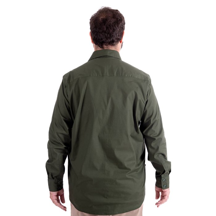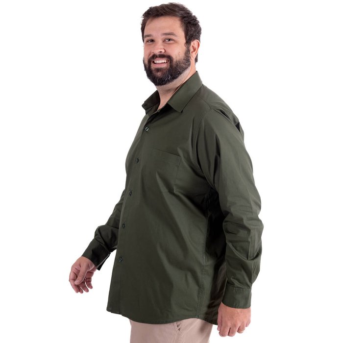 Camisa Plus Size Masculina ML Tricoline Elastic Verde