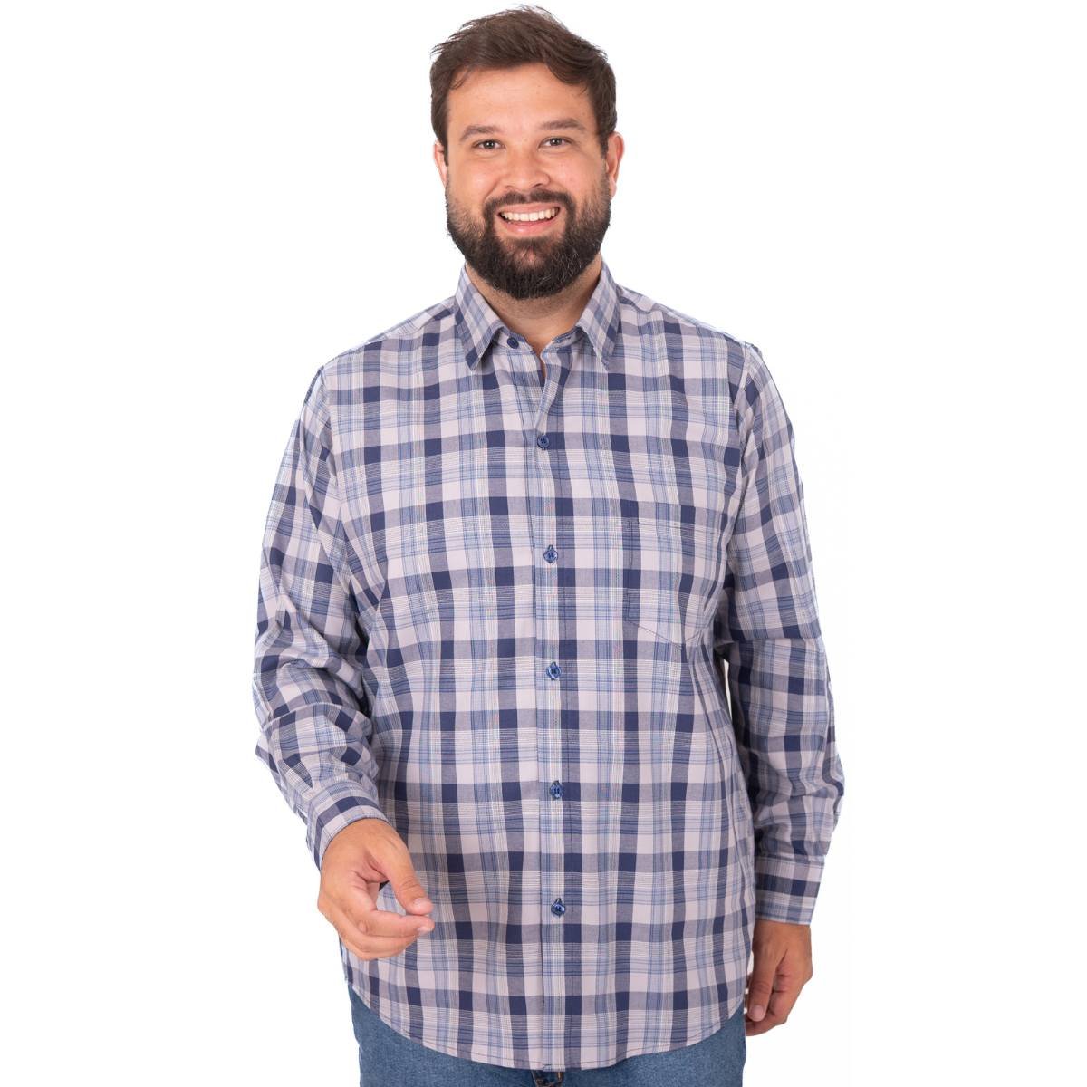 567891011121314Camisa Plus Size Masculina ML Boxer Chess Azul Marinho