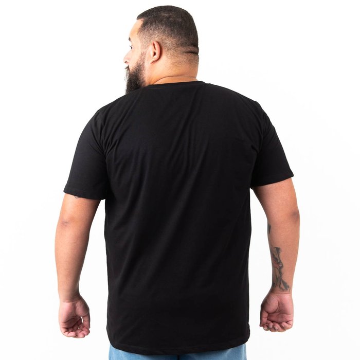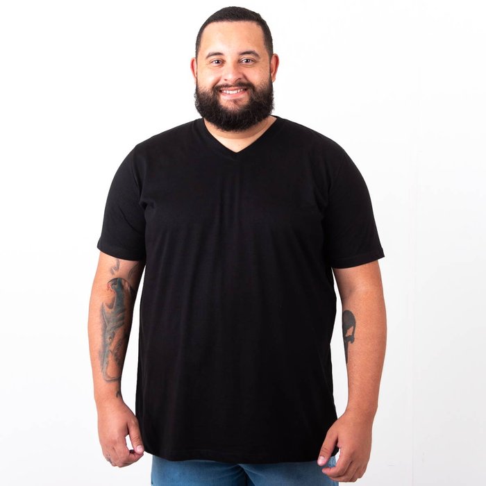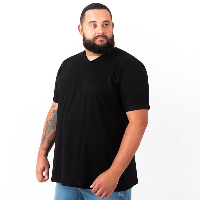 Camiseta Plus Size Masculina Gola V Lisa Preta