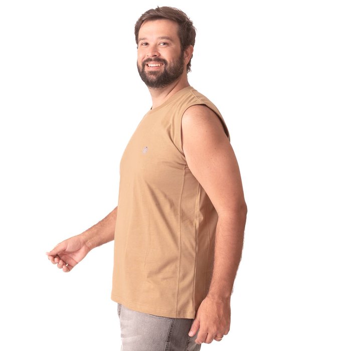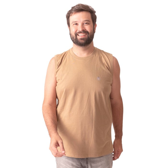 Com visual básico e clean, conta com logo pequeno discreto, trazendo um toque moderno sem perder a proposta minimalista. A gola redonda e as cavas amplas no estilo machão/regata tradicional proporcionam liberdade de movimento e um caimento solto, ideal para atividades do dia a dia, lazer ou momentos de descanso.