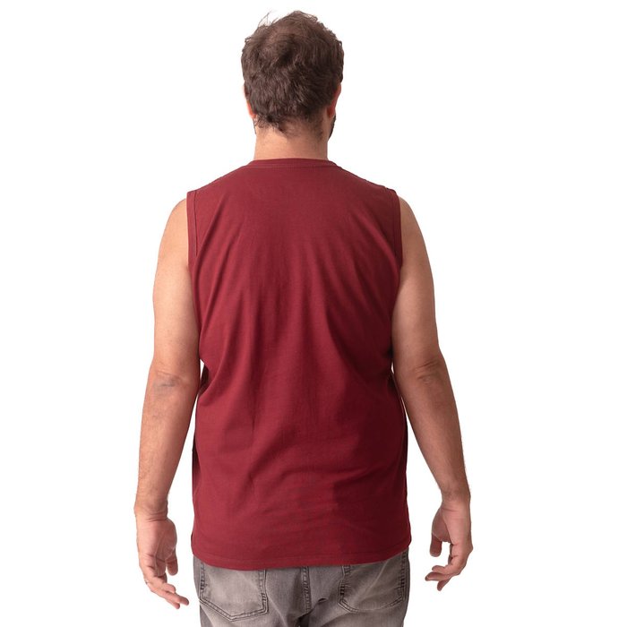 O modelo possui visual básico e clean, com logo pequeno discreto, garantindo um estilo moderno sem excessos. A gola redonda e as cavas amplas no estilo machão/regata tradicional oferecem liberdade de movimento e conforto térmico, sendo uma ótima escolha para dias quentes ou momentos de lazer.