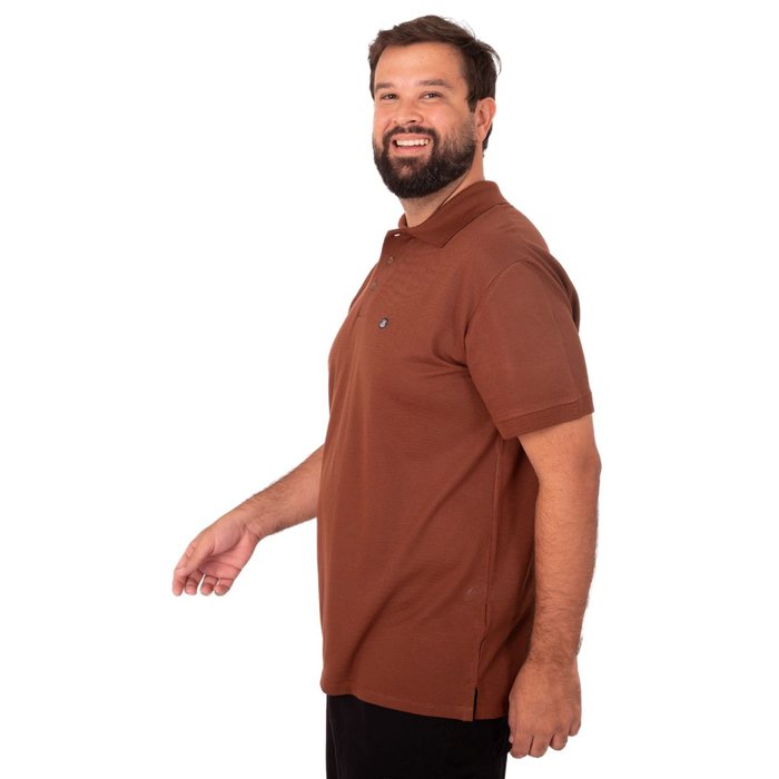 A Polo Plus Size Masculina Piquet Modal Marrom é ideal para homens que buscam conforto superior, elegância discreta e versatilidade para o dia a dia ou ocasiões mais arrumadas. Produzida em tecido piquet com composição de 97% modal e 3% elastano, oferece toque extremamente macio, excelente respirabilidade e leve elasticidade, garantindo conforto prolongado e ótimo caimento.